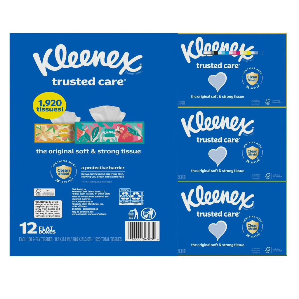 Kleenex Trusted Care 2-ply Facial Tissues - 160ct/12pk
