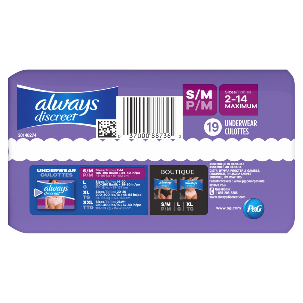 Always Discreet Adult Incontinence Underwear for Women & Postpartum Underwear S/M - 19ct/2pk