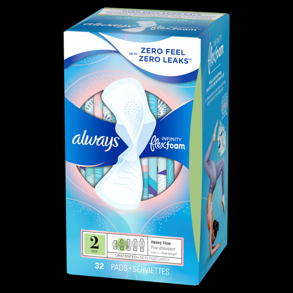 Always Infinity with FlexFoam Pads for Women Size 2 Heavy Absorbency with Wings Unscented - 32ct/6pk