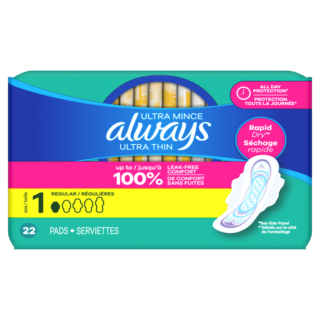 Always Ultra Thin Feminine Pads With Wings For Women Size 1 Regular Absorbency Unscented - 22ct/12pk