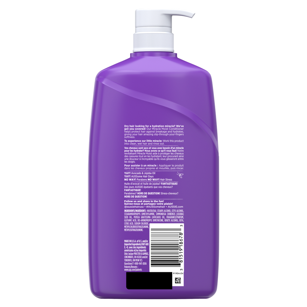 Aussie Miracle Moist with Avocado & Jojoba Oil, Paraben Free Conditioner - 26.2oz/4pk