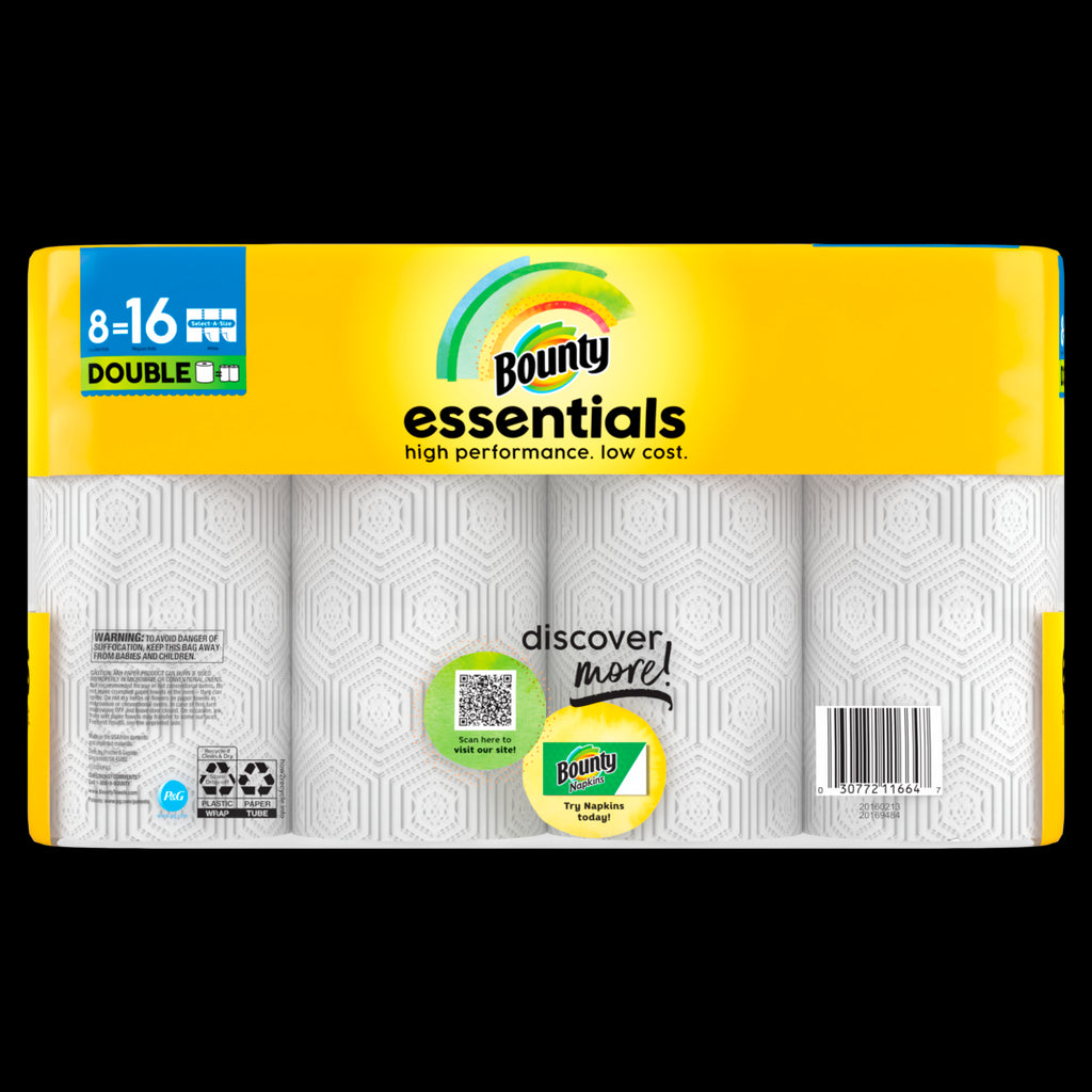 Bounty Essentials Select-A-Size Paper Towels White Double Rolls - (8x108)ct/1pk