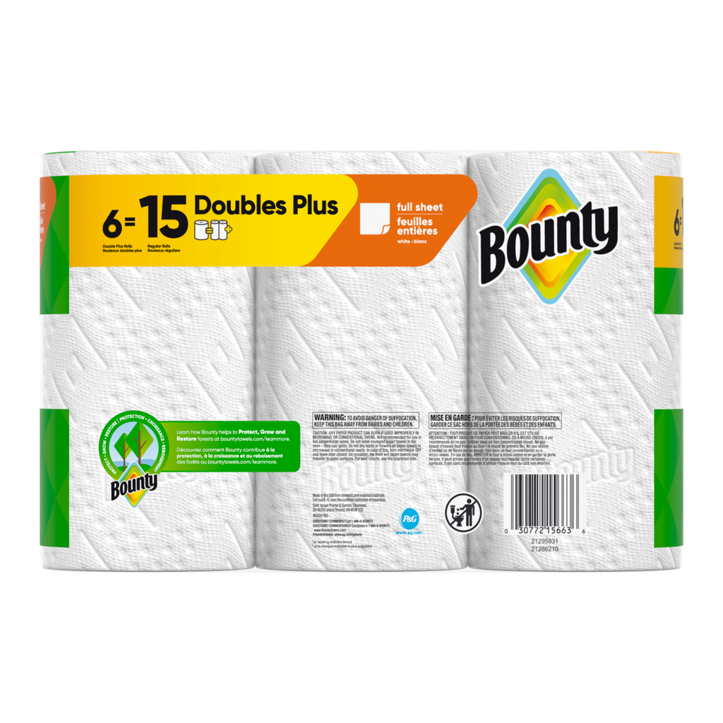 Bounty Paper Towels Full Sheet White Double Plus Rolls - (6x63)ct/1pk