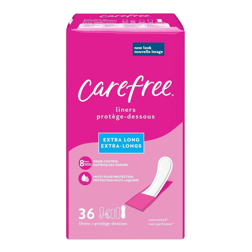 Carefree Panty Liners Extra Long Wrapped Unscented - 36ct/8pk