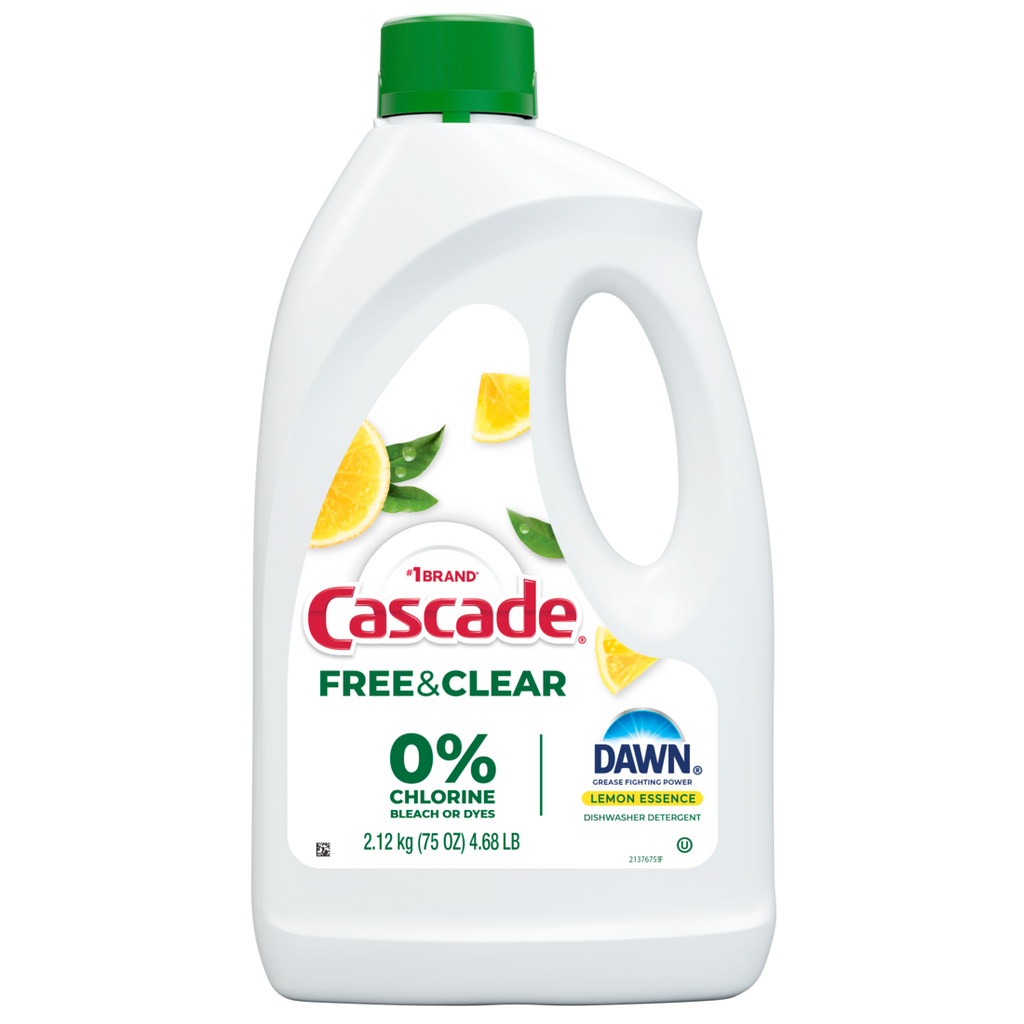 Cascade Free & Clear Dishwasher Detergent Liquid Gel Dish Detergent Dishwasher Soap Lemon - 75oz/6pk