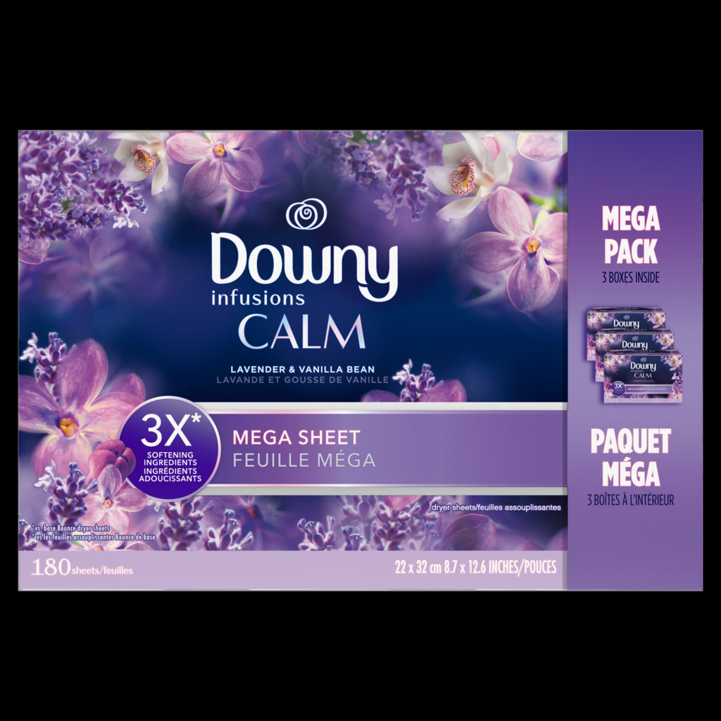 Downy CALM Mega Dryer Sheets Laundry Fabric Softener Lavender and Vanilla Bean - 180ct/3pk