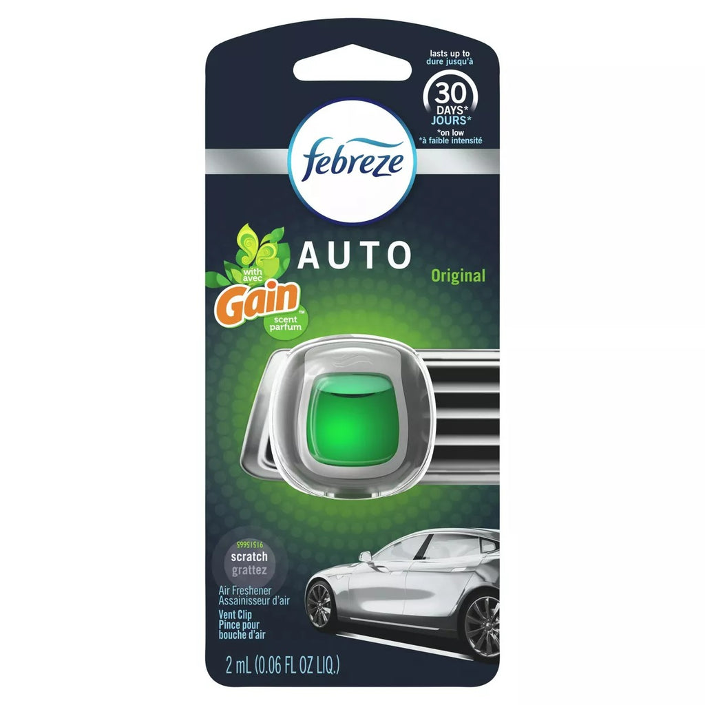 Febreze AUTO Air Freshener Odor-Fighting Automotive Vent Clip Gain Original - 1ct/8pk