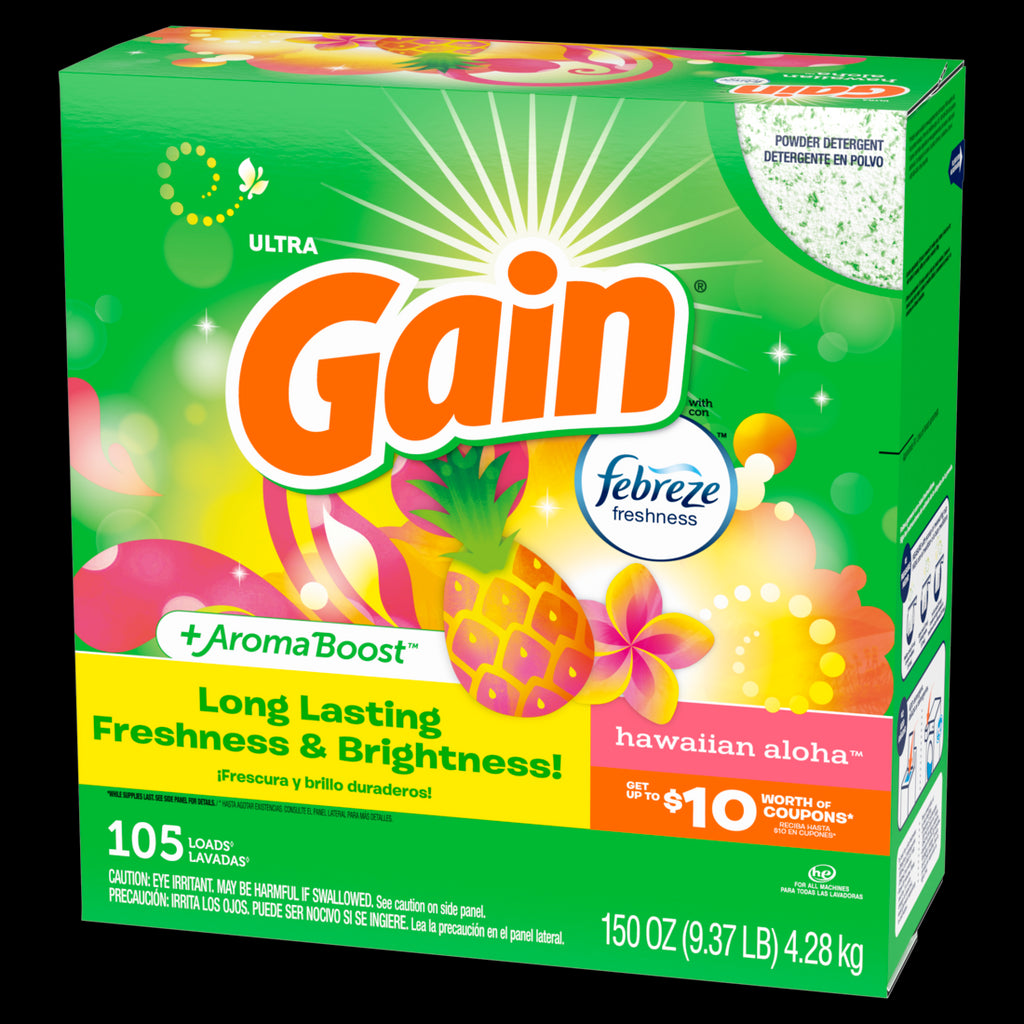 Gain Powder Laundry Detergent for Regular and HE Washers Hawaiian Aloha Scent 105 Loads - 150oz/2pk