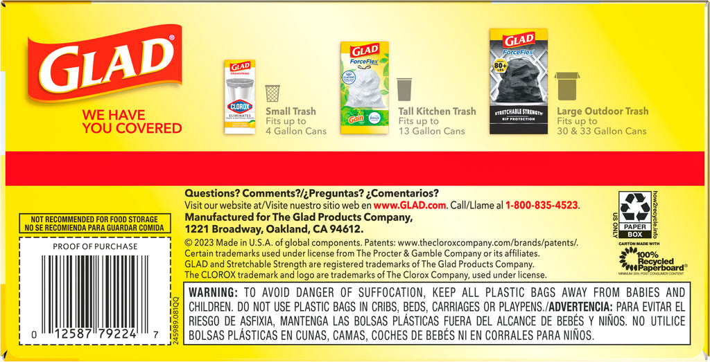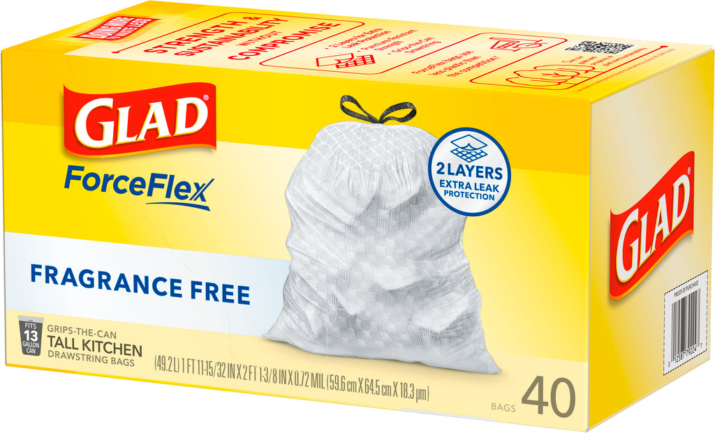 Glad ForceFlex Tall Kitchen Drawstring Trash Bags 13 Gallon Fragrance Free - 40ct/6pk