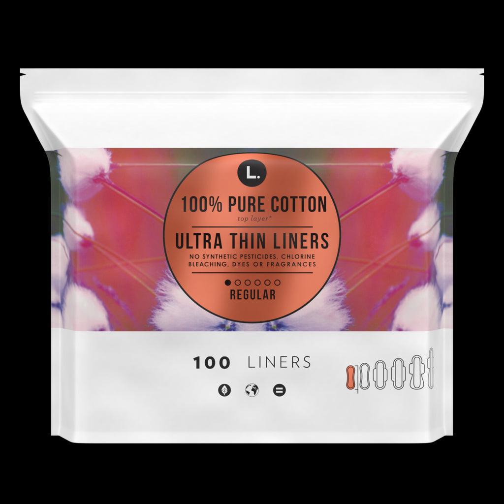 L. Chlorine Free Ultra Thin Liners Regular Absorbency Organic Cotton - 100ct/6pk