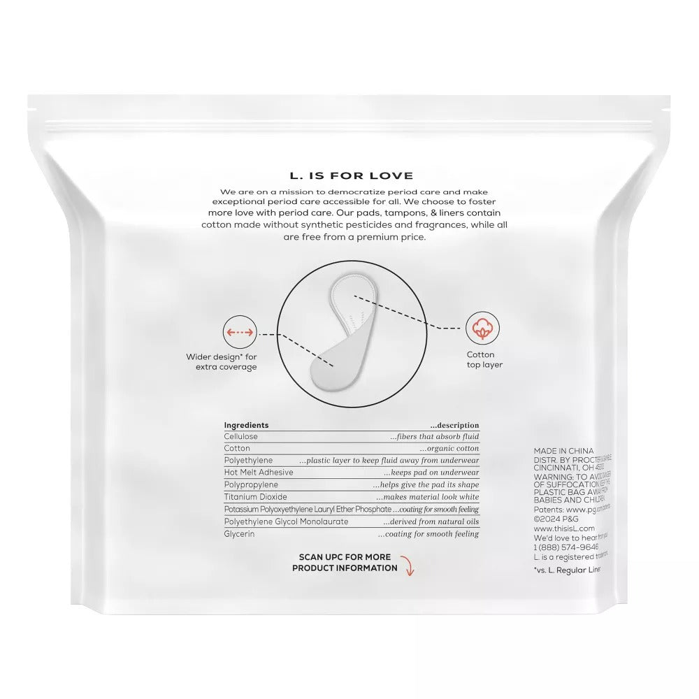 L . Cotton Topsheet Ultra Thin Extra Coverage Panty Liners - 80ct/8pk