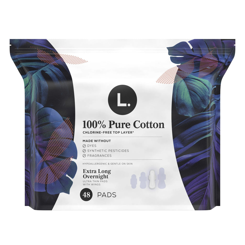 L. Ultra Thin Pads Overnight Absorbency 100% Pure Cotton Top Layer - 48ct/8pk