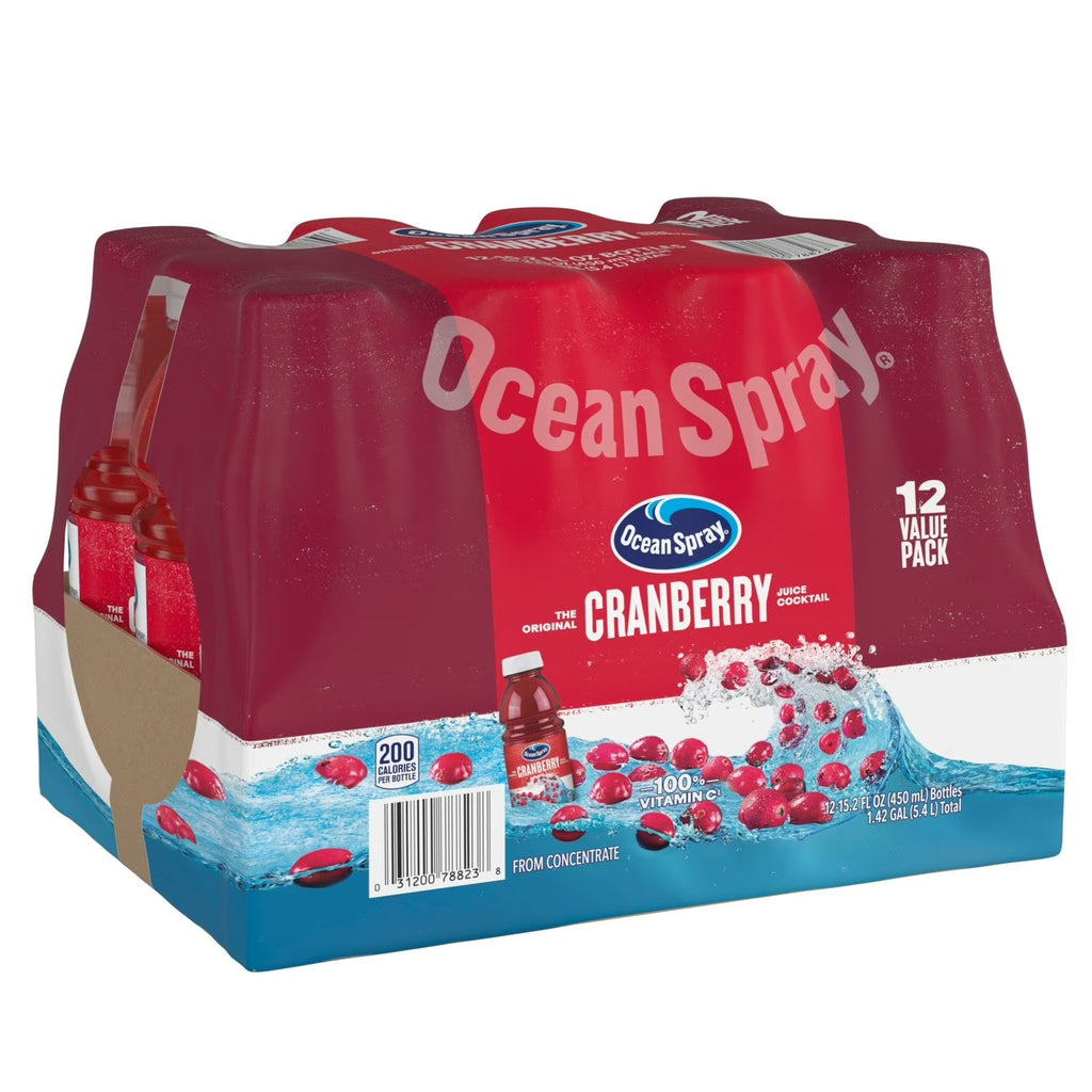 Ocean Spray Cranberry Juice Plastic Bottles - 15.2oz/12pk