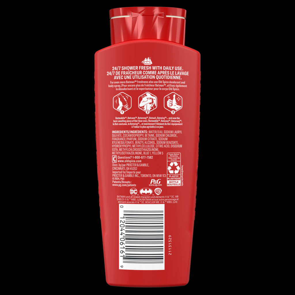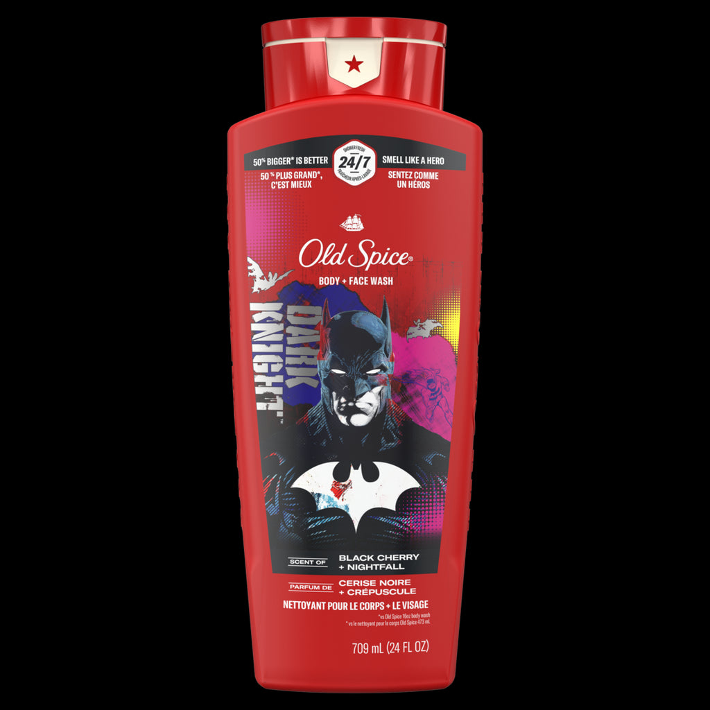 Old Spice Cleansing Body Wash for Men 24/7 Shower Fresh with Lasting Scent 2 in 1 Body and Face Wash Rich Lather Batman Black Cherry and Nightfall Scent 24oz - 24oz/4pk