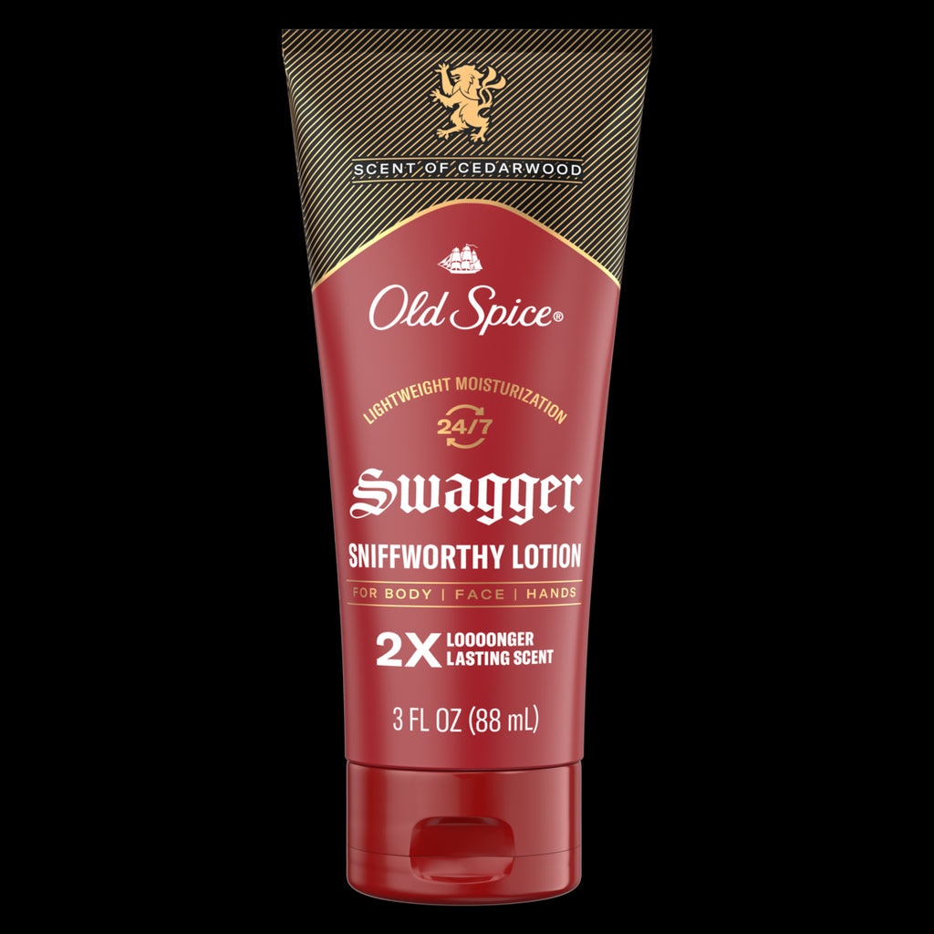 Old Spice Body Lotion for all skin types Travel Size 24/7 Lightweight Moisturization with Amazing Scent for Face Hand and Body Swagger Scent of Cedarwood Instant Absorption - 3oz/15pk