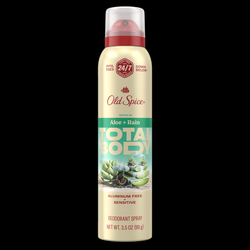 Old Spice Whole Body Deodorant for Men Total Body Deodorant Aloe + Rain Aluminum Free Spray for 24/7 Freshness - 3.5oz/12pk