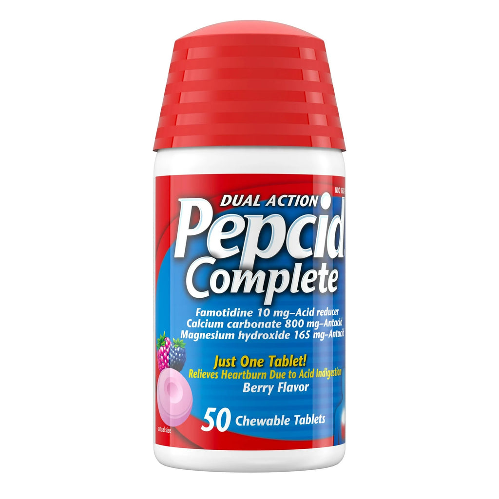 Pepcid Complete Acid Reducer + Antacid Chewable Tablets Berry Flavor - 50ct/3pk
