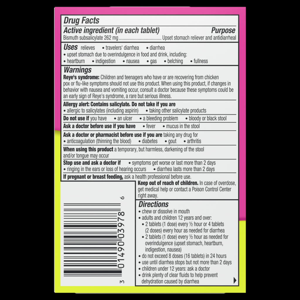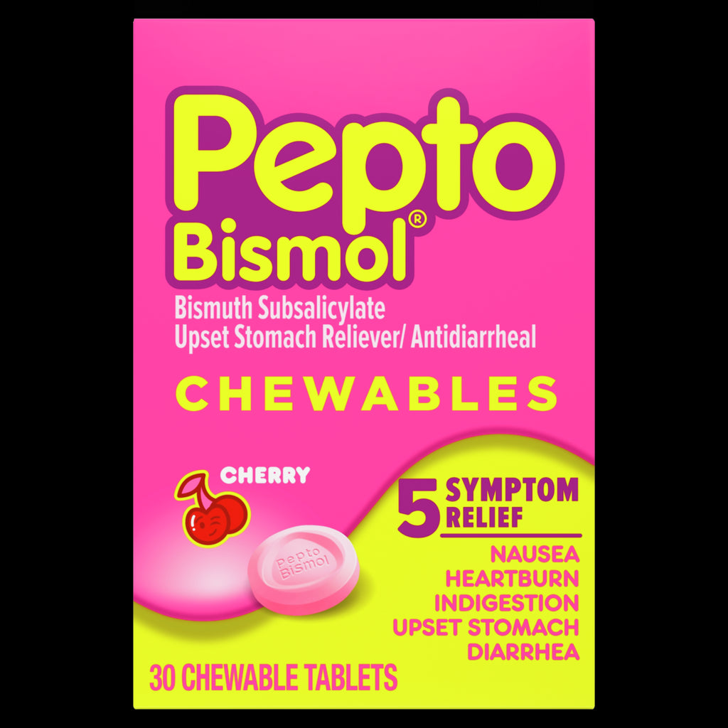 Pepto Bismol Chewable Tablets for Nausea Heartburn Indigestion Upset Stomach and Diarrhea - 5 Symptom Fast Relief Cherry Flavor - 30ct/24pk