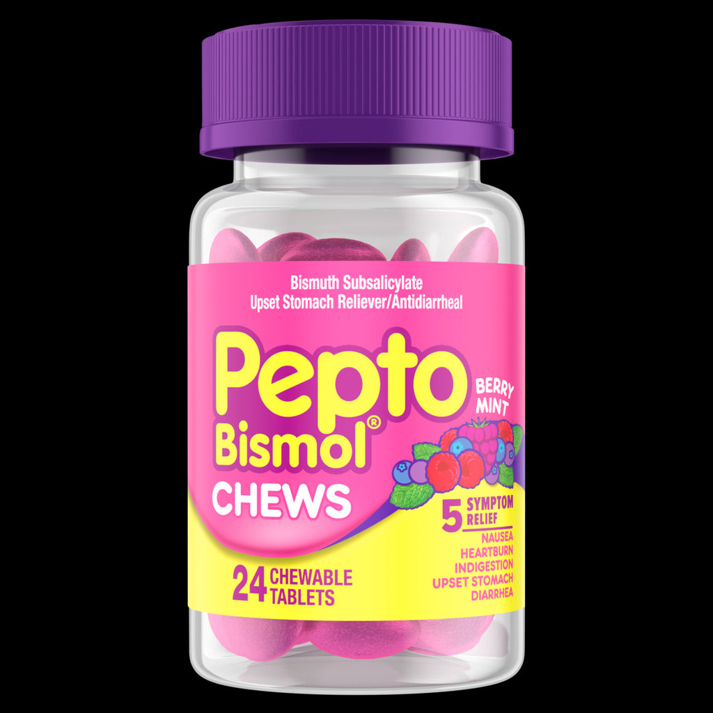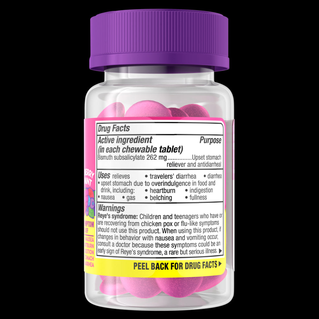 Pepto Bismol Chews Fast and Effective Digestive Relief from Nausea Heartburn Indigestion Upset Stomach Diarrhea Berry Mint Flavor Chewable Tablets - 24ct/12pk
