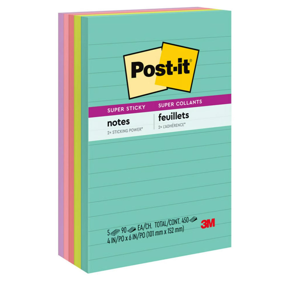 Post-it Super Sticky Notes 4" x 6" Supernova Neons Collection Lined 90 sheets - 5pads/1pk