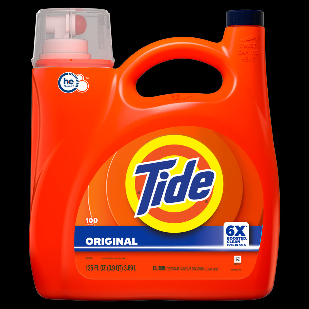 Tide Laundry Detergent Liquid Original Scent 100 Loads Works on 100% of Common Stains - 125oz/4pk