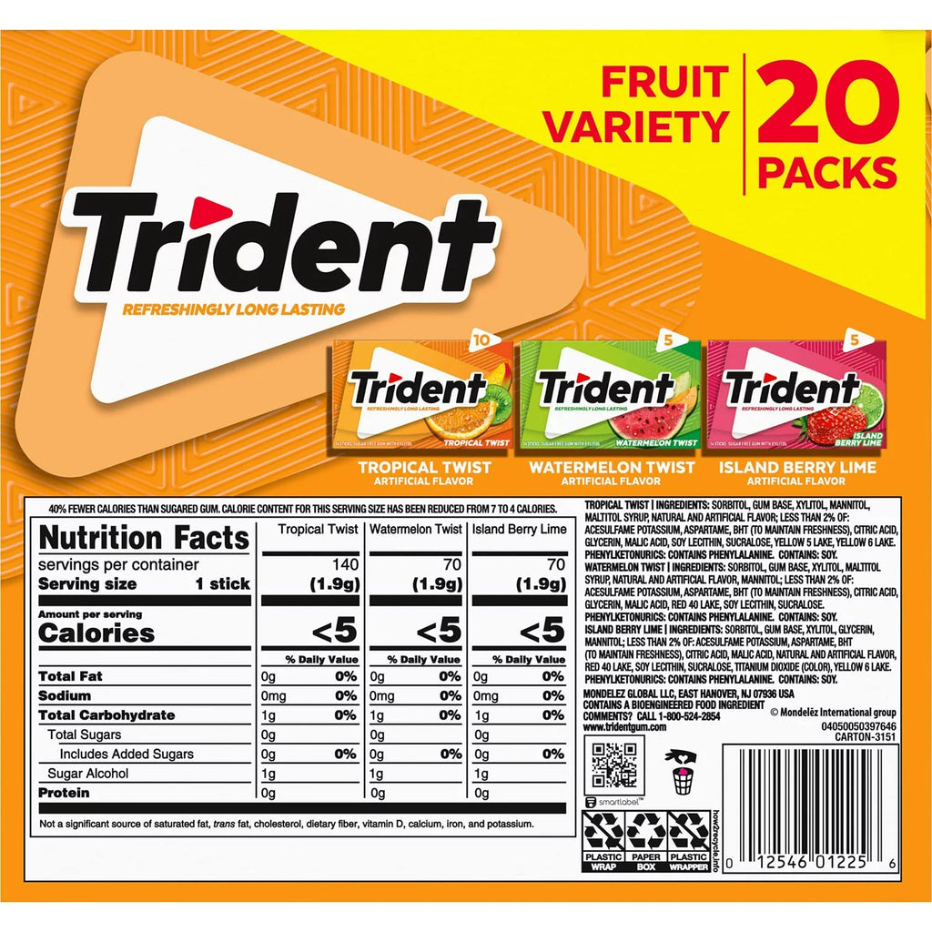 Trident Fruit Sugar Free Gum Variety Pack - 20ct/1pk