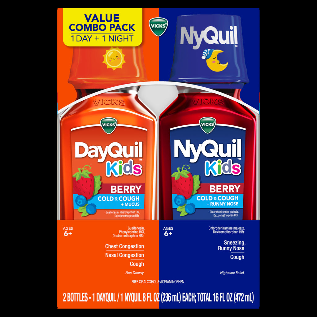 Vicks DayQuil & NyQuil Kids Berry Cold & Cough Medicine Daytime & Nighttime Relief Combo Pack- 8oz/3pk
