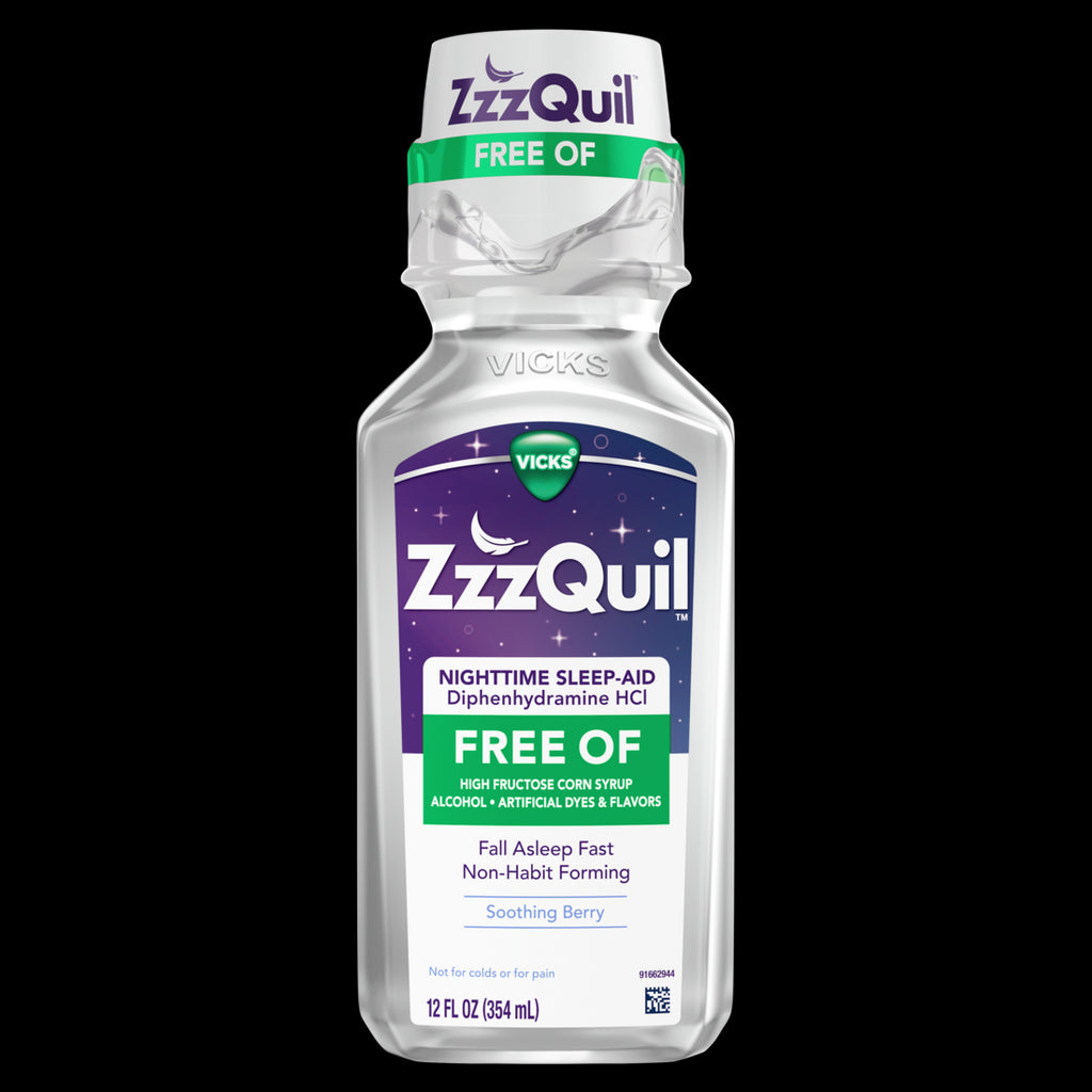 ZzzQuil Liquid Sleep Aid Diphenhydramine 50mg HCI FREE OF Alcohol and Artificial Dyes Nighttime Sleep Aid Liquid Non-Habit Forming Soothing Berry Flavored -12oz/12pk